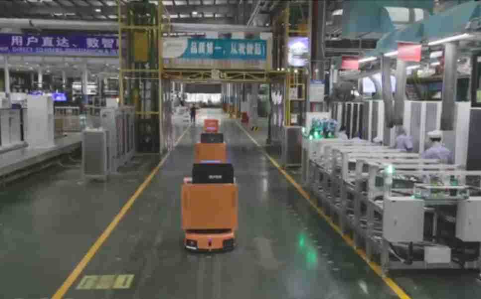 为车载冰箱物流配送打造的智能解决方案,,,包含产中物流通过潜伏举升AMR搬运至线边,,,产后成品物流智能仓储,,,流程包含产中物流智能齐套入库,,线边安灯叫料AMR智能配送至线边,,成品入库、、、出库,,,通过无人堆高车机器人,,,智能仓储管理替代人工作业管理,,,实现更高存储、、、更高效率、、更具柔性化的解决方案。。。